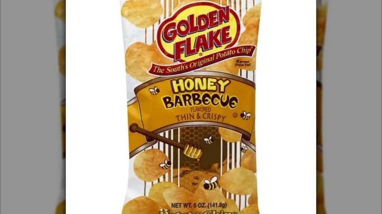 If you're at a Southern cookout, obviously you're going to have some iconic barbecue sides to fill your plate. Make sure to leave room for the Golden Flake. Trust us, this chip tastes best when used as a topping for a pulled pork sandwich. Of course, if a pulled pork sandwich isn't handy, you can always reach for a bag of pork skins. Also known as cracklings, Golden Flake's crispy fried pork skins come in as many different flavors as you'd expect from regular chips.