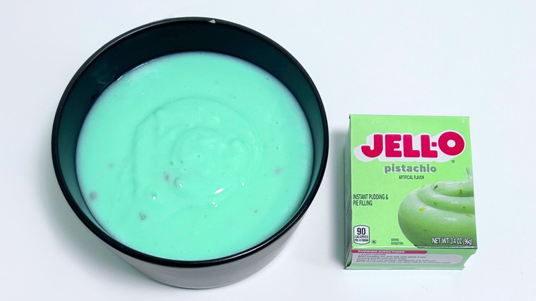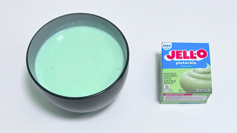 The one good thing I can say about this Jell-O Zero Sugar Pistachio Pudding is that it's very pretty — the green coloring catches the eye and draws you in. Unfortunately, that's a trap because once you get close enough, the smell acts as a deterrent. It smells largely of nuts that had been sprayed with pesticides. I won't purchase this again and recommend you avoid it at all costs. You're better off grabbing one of the better-ranking Dairy Queen Blizzard flavors instead, if you need a sweet treat.