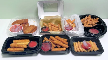 Red Lobster is another restaurant I don't frequent, and I was surprised to hear it even carries mozzarella cheese sticks. They came in standard stick form and cost $10.49. A strong creaminess paired with thick starchy notes and faint hints of earthiness permeated the air as soon as I opened the lid, making my mouth water. These cheese sticks definitely had the best smell of any on this list.