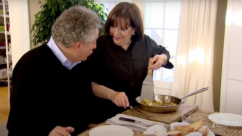 Ina Garten's love of her husband Jeffrey is both well-known and well-exhibited in Barefoot Contessa. The economist and professor has made frequent appearances on his wife's show, with his cameos always bringing a smile to viewer's faces. One of his more memorable appearances was in the episode "Post Cards from Paris," in which Ina makes a series of meals inspired by her visits to France's capital. One of them, her country French omelet, is a substantial affair stuffed with bacon, potatoes, and chives — and Jeffrey gets to enjoy it for his lunch. In the episode, he even manages to identify which restaurant's food the meal is inspired by. "He wins the omelet prize!", says Ina in response.