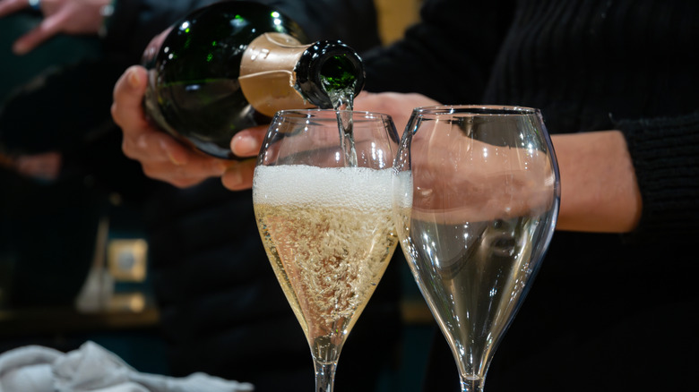 Champagne and bourbon? Yep, it's a thing, folks. You might not think that the dry, crisp, elegant notes of champagne work super well with the heavier, woodier flavors in bourbon — but that contrast is what makes the duo pop. Champagne and bourbon are the base of the Kentucky 75, a variation on the popular French 75, which is typically made with gin. The dry champagne (you can also use any other sparkling wine) helps to temper bourbon's sometimes overwhelming taste, and it also adds an effervescence which lightens up the bourbon well. The bourbon, in turn, fills out the champagne's flavor and gives it a little bit more of a kick.
