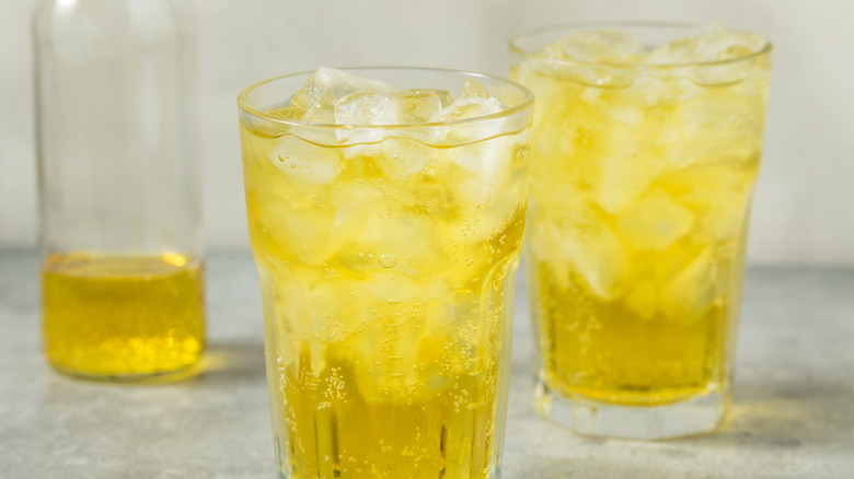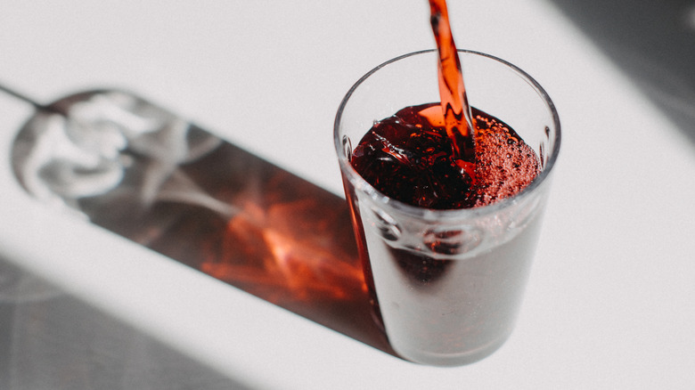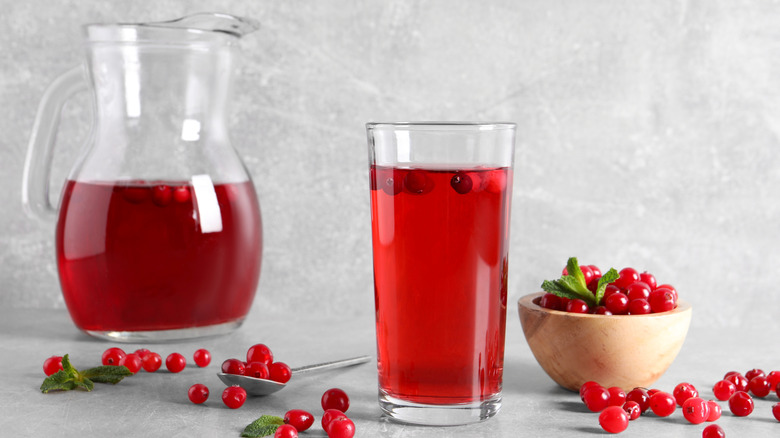 Cranberry juice is a super common mixer for certain alcohols — so why not bourbon? Honestly, I don't know the answer. Cranberry juice isn't most people's first choice for a mixer for bourbon, but it really works. There's a sharpness to cranberry juice that cuts through heavier, smokier bourbons, and its sweetness pairs with bourbon's vanilla edge. On an aesthetic level, too, the deep red of the juice just looks good with your bourbon. It's a great choice for folks who like their mixers light, bright, and dramatic.
