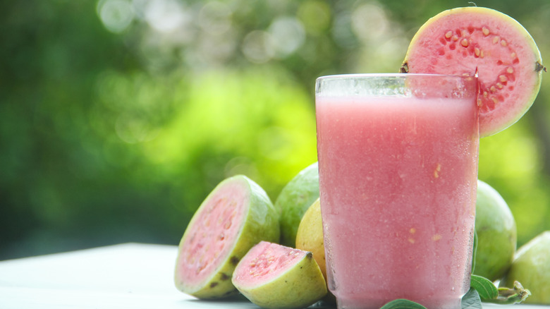 Guava juice isn't used nearly enough as a mixer, in our opinion — and when it's combined with bourbon, it creates a flavor dynamic that, quite frankly, slaps. Guava juice has a tart-sweet taste that's the antithesis to bourbon, with all its smoky, honeyed intensity. Its bright, almost vegetal flavor helps to lift the bourbon out of itself, and stops it from tasting too dense and meaty. The two come together to make a seriously punchy drink, especially when you serve it ice cold.
