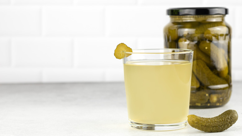 Pickle juice is generally served with bourbon as a pickleback, and there's a reason it works so well — and while it's usually served as a shot, as a mixer it's just as good. The sour, salty nature of pickle juice balances the bourbon fabulously, and helps to pull back any overt smoky notes in the whiskey. Pickle juice also has an umami flavor to it which creates a little more lift in your bourbon, and stops it from being just a drink. That's right: With pickle juice, this beverage becomes an event, y'all.