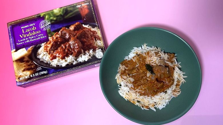 Trader Joe's lamb vindaloo has everything: searingly hot sauce, juicy and flavorful meat, and well-cooked rice to bring it all together. While the chicken vindaloo seemed unbalanced, simply swapping out bland, dry chicken breast for rich, intensely flavored pieces of lamb made all the difference. I struggled to get through the chicken dish, but I couldn't stop eating the lamb version. When it was gone I wanted more immediately.