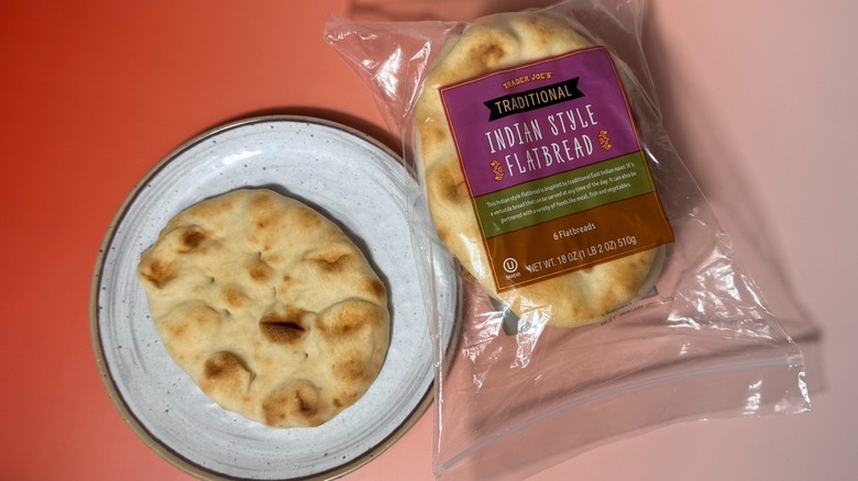 All told, I tried four varieties of Trader Joe's Indian breads, and they're all pretty darn good. This garlic Indian style flatbread takes the lowest spot only because I wished it were significantly heavier on the garlic. As someone who basically worships the pungent bulb, that might just be a me problem — it's entirely possible there's enough garlic flavor here to please most people's palates. For me, though, it was lacking.