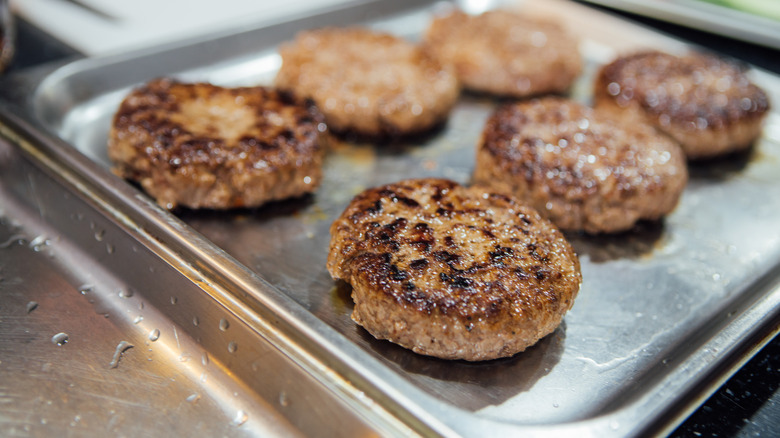 If you're in a hurry, you can make burgers in the oven more quickly if you broil them. Simply set your oven to broil, and while it's preheating prepare the patties, then cover the baking tray with foil. Next, slide the tray on a rack just below the flames and cook for a much shorter four to five minutes. Flip them and broil another four to five minutes — adjusting the time for how well done you want the finished patties. This will earn you some crispy burgers in half the time as the standard oven method.