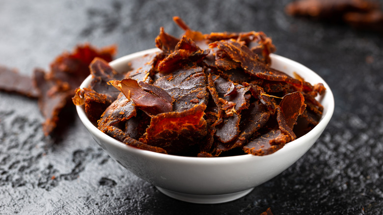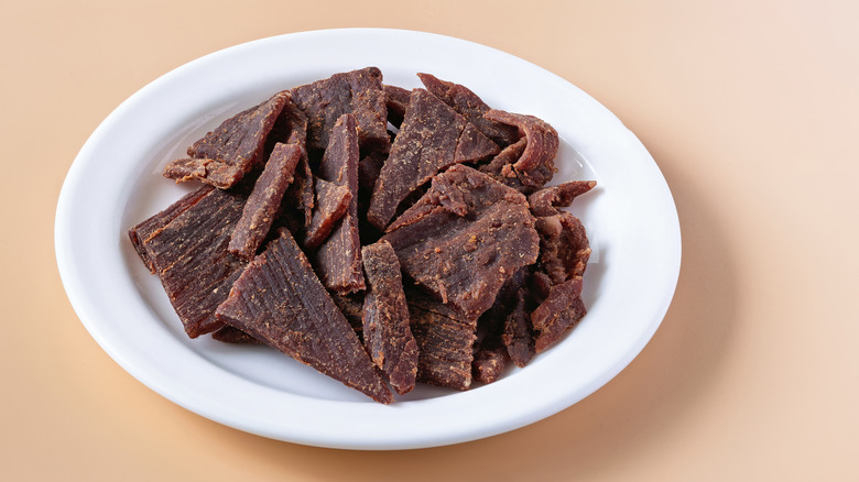 The reasons for recalling beef jerky can be pretty varied, too. A lot of time, it's called back to the warehouse because of a mislabeling or misbranding issue, which can also mean that it contains undeclared ingredients or one of the most common allergens. Elsewhere, beef jerky products have been recalled due to lack of inspection — and sometimes, rogue objects make their way into the product itself, which could cause serious harm.