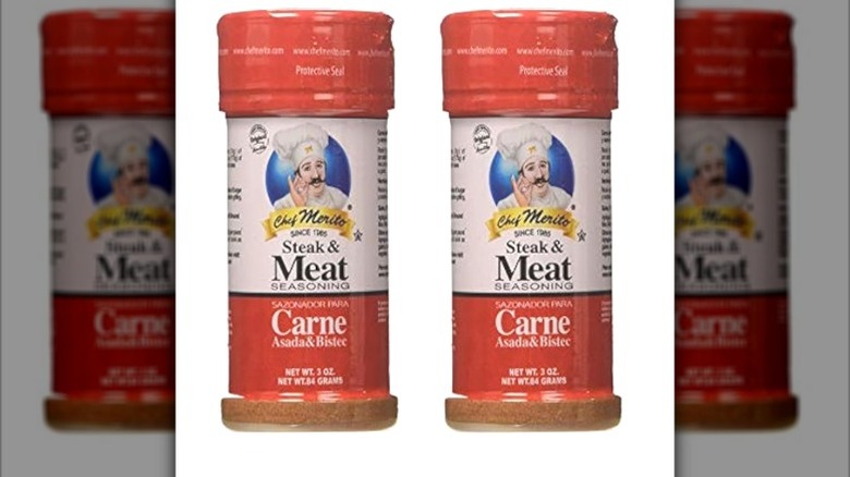 The Chef Merito Steak & Meat Carne Seasoning contains paprika, salt, sugar, garlic, MSG, oregano, cumin, onion, and black pepper. What's particularly great is that it also contains papain, which makes it useful for tougher meats like steaks because it naturally tenderizes them. I don't add anything else when I use this seasoning mix as it contains enough salt for my tastes (which is what I usually end up needing to add). However, you should know that this contains a cross-contamination warning for eggs, soy, and wheat, so it's not appropriate for people with those allergies or intolerances.