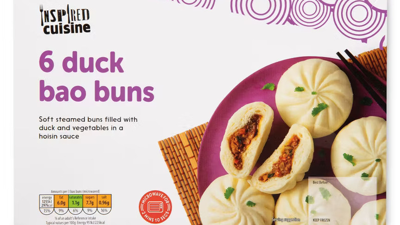 Bao buns, those pillowy soft bites of heaven, are wonderful. Frozen food is a time saver and luxury. That's why we're jealous of Aldi shoppers in Ireland, who can saunter their carts over the freezer aisle and grab some Duck Bao Buns. Now, there is a difference between buns and dumplings, and these are buns. They are a little softer than dumplings, and also much thicker. Some bun dishes are served folded, almost like a thick taco, and some buns fully encase their filling. Aldi's Duck Bao Buns are the latter, so take a moment to appreciate the beautiful swirl on the top before biting.