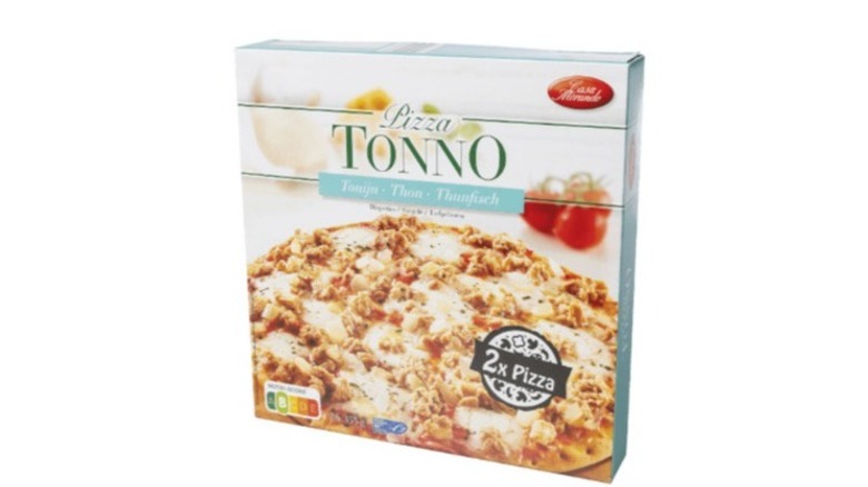 Pizza Tonno features plenty of delicious toppings, like mozzarella and edam cheese, spicy tomato sauce, and onions. None of those are the "tonno," though: Tonno means tuna. There isn't much that people in the U.S. won't try as a pizza topping, but certain things definitely inspire debates. Go on social media, or down to your local bar, or to a PTA meeting, and ask everyone if they like pineapple on pizza. You'll a variety of responses. We imagine that tuna would inspire similar debates. The point — Aldi France, if you're reading — is that we'd like to try some.