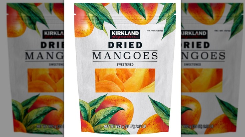 Kirkland Signature Dried Mangoes are grown in Cambodia and are pre-sweetened, so you can cut back on the added sugar just a bit if you want. You'll find them in a handy, 35-ounce resealable pouch for $11.29. If your recipe calls for chopped dried fruit, like these Kirkland mangoes, consider freezing them for an hour, then snip them to size with kitchen shears. You can also consider rehydrating the fruit by soaking it for about 15 minutes in a bowl of warm water before you add them to your dough or batter.