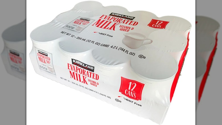 My grandma always had a plentiful supply of evaporated milk in her cache of baking products, and I knew it was great for our family's version of Swedish pancakes. But there's so much more you can make with an unassuming can of Kirkland Signature Evaporated Milk than just crepes. It's a terrific pantry staple because, unlike most milk products, it doesn't need to be refrigerated. With loads of milk fat and dry milk solids than whole milk, it's a thicker and creamier addition to desserts like pumpkin pie and flan.