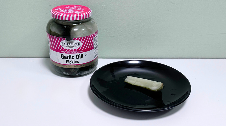 Before this taste test, I never thought I'd say the words "I hate these dill pickles." But, honestly, I came to feel that way about several of the pickles I tasted during this test — and these Ba-Tampte Garlic Dill Pickles were the worst offender. The tasting started off poorly when a smell like someone threw garlic into the ocean at low tide permeated my senses as I opened the jar. Truthfully, I didn't want to taste them after that smell, but I persevered for the purposes of this taste test.