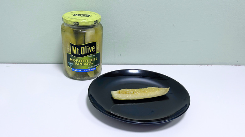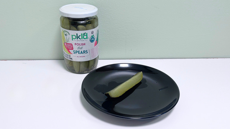 The taste test didn't go terribly. These aren't bad pickles, they're just not great, either — the definition of mediocrity, in fact. My first bite offered a mildly sweet flavor profile without much else going on, followed by a standard dill pickle aftertaste, which was a little weird. Both the taste and aftertaste were very faded, like they were the ghosts of flavor profiles rather than the real deal. I won't be buying these again, and think I'm better off crafting my own dill pickles instead. Unless you're looking for a very mild dill pickle spear, I recommend you skip these in lieu of better ranking options.