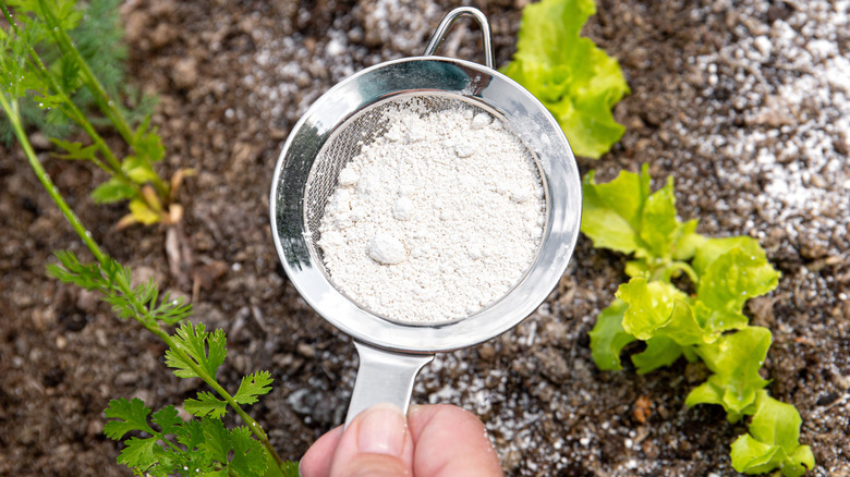 There are a couple of ways to use diatomaceous earth around your home and garden, depending on where you use it and the type of product you choose. If you're starting your own kitchen herb garden or have a larger garden that you want to protect against damaging bugs, spread a thin layer of diatomaceous earth on top of the soil around your plants. You can spread Harris food-grade diatomaceous earth using a kitchen sieve or sifter, just as you would for baking. Since pests will evade walking through thick layers, these tools ensure that you get a fine layer that they cannot avoid.