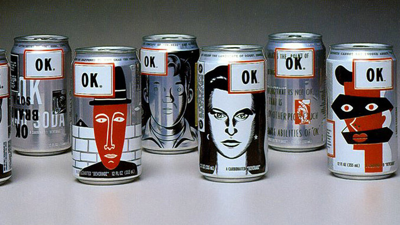The quirky, comic-inspired branding of OK Soda, launched in 1993, was a clear attempt to court Gen X consumers. The soft drink was positioned as subversive and slacking, with neo-noir illustrations and minimalist, postmodernist commercials that appeared to say it wasn't trying too hard. When reviews of the "just OK" flavor were lackluster, likening it (per TIME) to "carbonated tree sap," the company doubled down, printing a sphinx-like OK Manifesto onto the cans that said things like: "Don't be fooled into thinking there has to be a reason for everything." Well, OK.