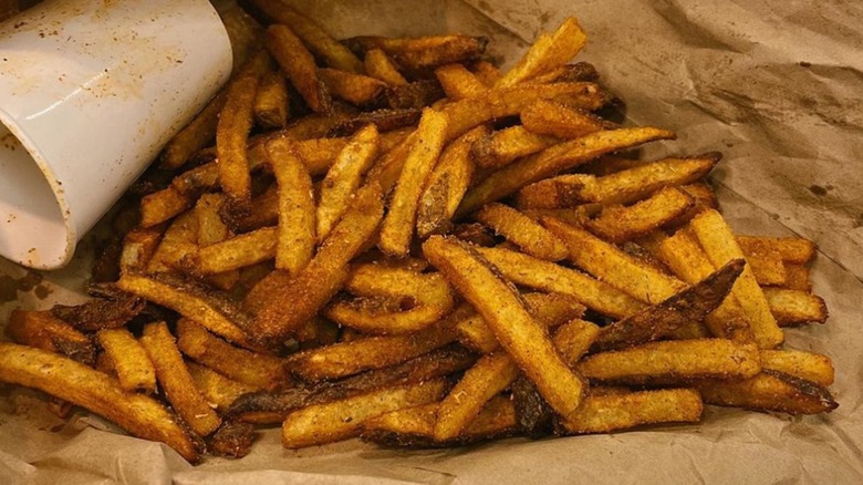 As fast food brands go, Five Guys has a solid reputation for being among the more expensive chains around. Its focus on quality meat, fresh ingredients, and large portion sizes are among the reasons the chain tends to charge more than its competitors. When it comes to its fries, one of the more surprising facts some consumers may not know is that the chain makes its boardwalk-style fries in-house from real potatoes, never frozen ones. It sources a majority of these potatoes from Idaho and fries them twice in peanut oil. Additionally, the chain has a reputation for tossing extra fries into the bag when you purchase an order of the side dish, making it seem like an extra great value.