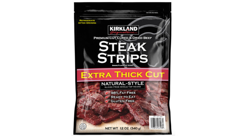 Kirkland Signature Steak Strips pack a whopping 9 grams of protein while only carrying .5 grams of fat and 10 milligrams of cholesterol. That's a pretty healthy on-the-go treat.