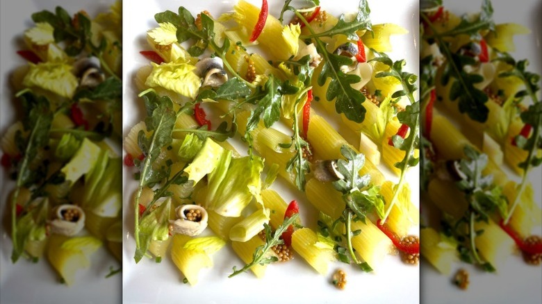 He was born in Strasbourg and worked his way to San Francisco, which shows in the salad as it's almost like an homage to his roots. It was made by boiling large celery stalks in a fresh stock made with chicken and veal bones, onions, carrots, salt, whole peppercorns, parsley, and bay leaves. The celery in this creation might not scream French cuisine, but the classic stock certainly does.