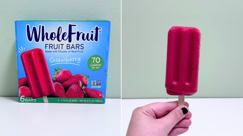 These Whole Fruit Strawberry Fruit Bars taste very similar to my second-ranked option, but there's one big difference that sets these popsicles apart. This fruit bar contains chunky bits of real strawberry in it, which create a textural complexity I love — that's why this slid ahead to become my top-ranked fruit-flavored frozen popsicle.