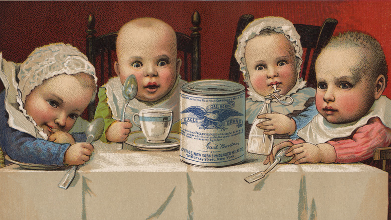 Something primarily used in select baking recipes and specialty drinks today, condensed milk is often taken for granted in the baking aisle of any grocery store. But it was originally invented as a means of addressing public health concerns, and its origins date back to just before the Civil War. Condensed milk first appeared in the mid-1800s as an alternative to fresh milk before pasteurization. This was intended to be a solution to the fresh milk at the time which was sometimes tainted, resulting in illness or death for those who consumed it. How condensed milk is made doesn't differ much from the original innovation. The process consists of adding sugar to milk and removing 60% of its water content.
