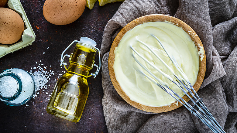As for why this chef was so determined to whip up something a little more luxe than what was available, more lore suggests that this first instance of mayonnaise was served as part of a celebratory dinner hosted for the duc du Richelieu. This occasion was held in honor of his victory at the Battle of Minorca, also known as the Battle of Mahon, in 1756. The site of a crucial naval victory against Britain which launched the Seven Years' War, Mahon may indeed have been the origin for the name of this airy, creamy condiment. Regardless of the amount of truth in this origin tale, it's certainly the French who popularized mayonnaise. To this day, many still generally prefer to whip it up from scratch rather than buying it pre-prepared.