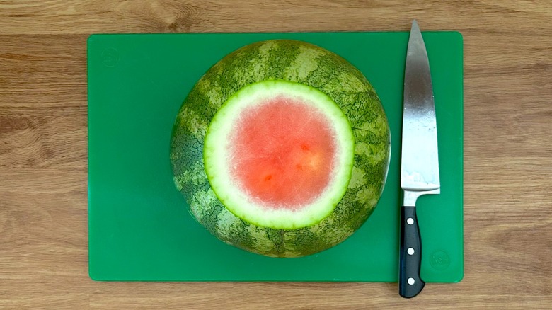 All of this is great, but one of the reasons more people don't indulge in fresh watermelon more frequently is that it can be a huge pain to cut. Its skin is dense, its shape makes it quite dangerous to handle, and you may need to start bodybuilding to wrangle one around without injuring a rotator cuff or throwing out your back.