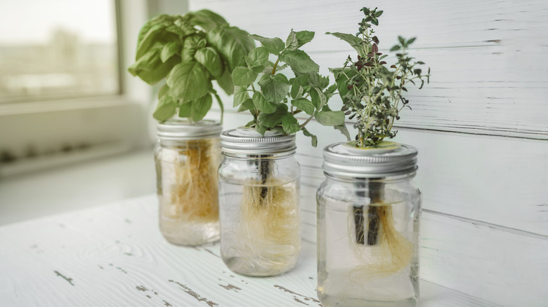 The Kratky method has been gaining popularity lately. It's a more hands-off, budget-friendly way to dip your toes into hydroponic gardening. All you need to do is place your plant in a container filled with water and nutrients. You can even repurpose mason jars from your kitchen. As the plant grows and drinks, the water level drops, and the roots reach down to meet it. The gap left at the top gives the roots the breathing room they need.