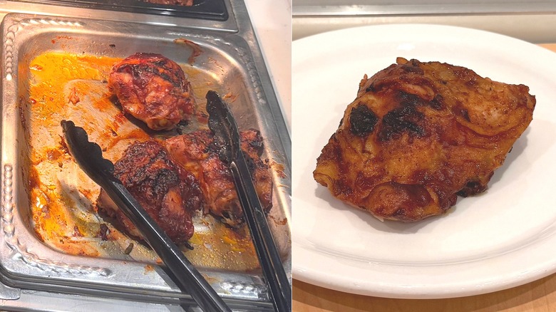 When it came to Golden Corral's barbecue chicken, it looked way better than it tasted. While the chicken itself was pretty good, the rest of the dish fell short.