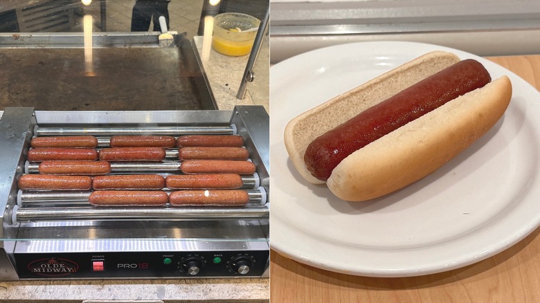 When it came to flavor, it did taste like a pork hot dog, but there was no other flavor, along with no snap from the dog. Honestly, this tasted like a mediocre "ball park" boiled dog — and not in a good way. Do better, Golden Corral. Hot dogs are a cherished part of American culture.