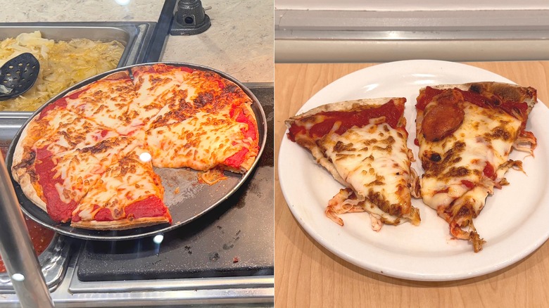 Upon first glance, I knew exactly what I was getting with Golden Corral's pizza. Have you ever tried cafeteria pizza? Like from a school or a hospital? This is it.