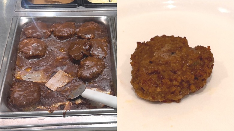 One look at that pan, and I was already saying no. But I take my work seriously, so I had to try all aspects of the buffet ... even if the Salisbury steak looked super questionable.