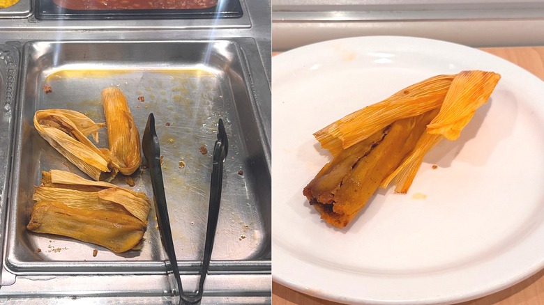 These weren't super dry or moist — a true Goldilocks story — and featured a great array of flavor. Made from corn meal around a pork filling, these little pockets were spot on in all ways of deliciousness. The meat mixture was a touch cumin-heavy, but each bite was consistent, and the light heat added a lot of flavor to each bite. I'm definitely surprised by saying this: Absolutely try the tamales at Golden Corral!