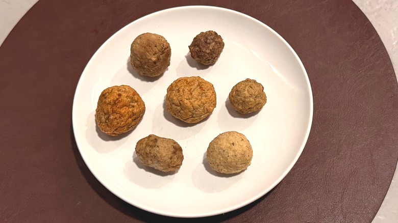 However, decent isn't great. The smell was far more powerful that the taste, which meant these meatballs leaned bland. After a while, that oregano started to build on my tongue, so for me, these couldn't make it into the top three. There was no balance, just herb. While the texture was fine, these meatballs were small compared to the rest. Would these work well with a pasta sauce? I'm sure. These meatballs land on the unhealthier side of things, but I'm here for flavor — not nutrition.
