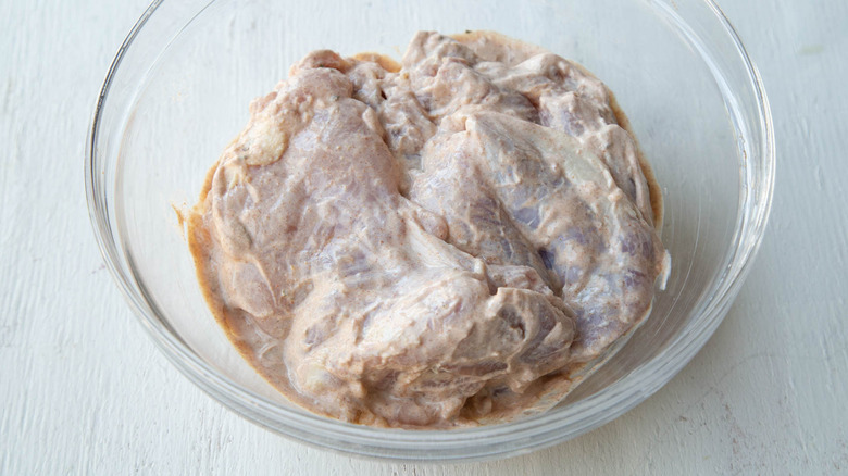 - Add the chicken thighs and toss to coat. Refrigerate for at least 2 hours, or overnight.
