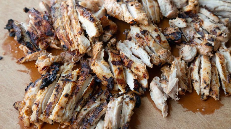 Place the chicken on a cutting board and let it rest for 5 minutes. Slice into ¼ inch strips.