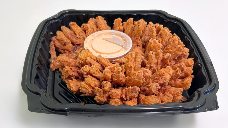 Start by smothering your Cactus Blossom in pulled pork to turn this delectable side into a full-blown entree. Just ask to add the pork, which will come at an additional charge of about $8 to $10 (depending on your location). But, if you don't want to go all out, ask for your Cactus Blossom to be smothered in Jack Cheese instead. This adds a creamy layer to create textural and flavor complexity to your mildly sweet, richly umami fried onion.