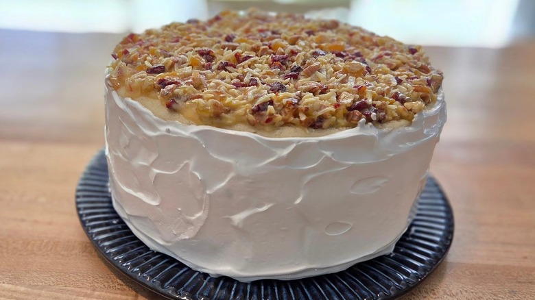 While a Lady Baltimore cake appears to be something that you'd discover at a bakery in Maryland, this dessert actually has its roots in Charleston, South Carolina. It gets its name from a combination of reality and fantasy. Though immortalized in a famed book by the same name, which was authored by Owen Wister in 1906, the cake was likely a fixture of the Lady Baltimore Tea Room, where owners Florence and Nina Ottelengui developed the recipe as a variation on the popular queen cake. Wister likely enjoyed the cake while dining there and included it in his iconic novel.