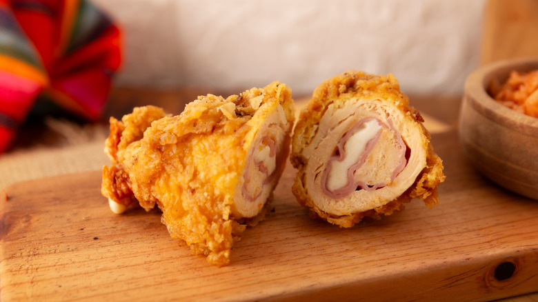 If someone says the words "cordon bleu" to you, you probably think of an incredibly skilled chef, right? That association comes of course from Le Cordon Bleu, arguably the most famous cooking school in the world and a producer of some of the finest cooks in the land. However, the name "cordon bleu" can also be applied to dishes that really excel themselves — and one of these, chicken cordon bleu, is a fancy poultry dish that now feels a relic from a former era.