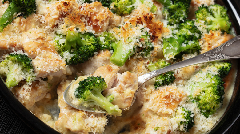 Well luckily, it's not too hard to figure out what went into it. Chicken divan is a combination of chicken breasts which are piled on top of pieces of broccoli and topped with a white sauce. The dish is scattered with parmesan cheese, and the casserole is then broiled in the oven until everything is cooked and bursting with flavor. Interestingly, chicken divan is one of the first examples of broccoli and chicken in mainstream American cuisine, a combo that would become incredibly popular as the years went on. Chicken divan had its heyday during the middle of the 20th century, but after a while it began to feel a little too old-school. Soon, restaurants everywhere were dropping it from their menus.
