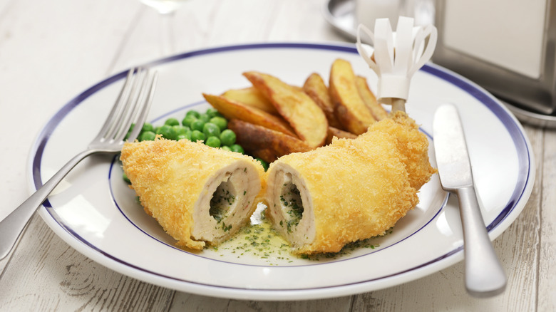 The chicken Kyiv (formerly known as the chicken Kiev prior to 2022, before the world began embracing the Ukrainian spelling following the Russian invasion of Ukraine) is a thing of beauty. Anyone who's tried this chicken dish will tell you how tasty it is, and how effective the combination of chicken meat and smooth, sharp, garlicky butter is on the palette. Although the chicken Kyiv is named after the capital of Ukraine, it actually has its beginnings in French food culture. The chicken Kyiv was first brought to Ukraine by chefs who had gone to Paris to learn their trade. They learned a version of the dish made with veal, and when they got back to their home country the chefs started making it with chicken. A classic was born.