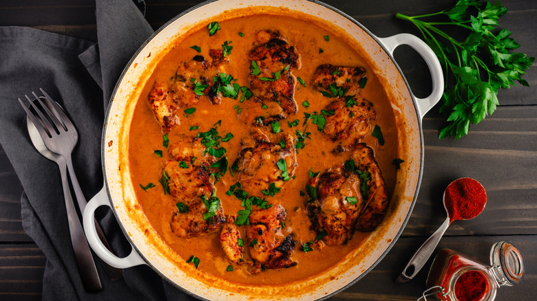 Chicken paprikash, which is thought to have been invented in around 1920, took off big time, with the dish being served in restaurants and cooked in home kitchens alike. Sadly, the years have seen many of these restaurants close, and chicken paprikash's heyday as a mainstream dish has since passed. That doesn't mean you can't still find it in Hungarian eateries, though, especially those in Hungary itself. Plus, if you're making it at home, it generally takes just a few key ingredients — although Hungarian paprika is non-negotiable, so don't think you can sub it out, people.