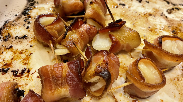 Rumaki is unique in that it skips more mainstream cuts of chicken, and instead opts to use chicken liver. Each piece of liver is topped with a water chestnut and then wrapped in bacon. The whole construction is bathed in soy before being cooked until the outside is crispy and the inside remains juicy and savory. Perhaps the decline of eating organ meat led to rumaki's demise and eventual removal from the Trader Vic's menu, and its subsequent disappearance from food culture. If you want to try it, it's easy enough to make at home.