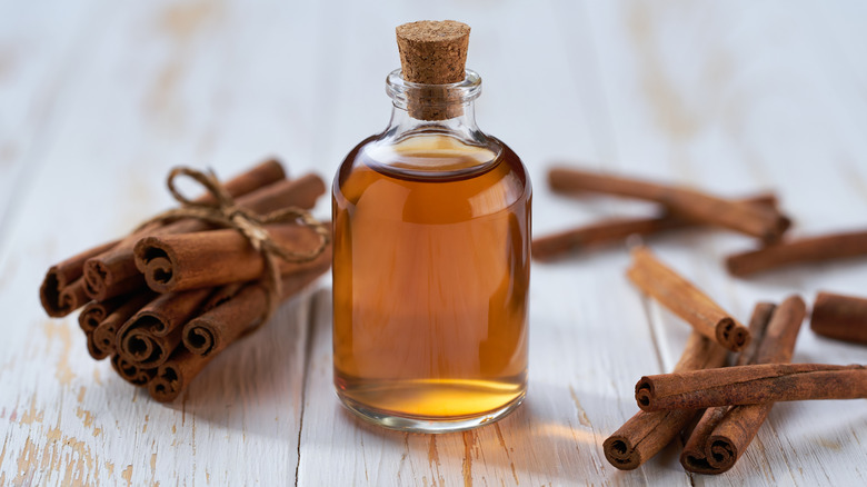 Keep in mind, however, that the scent of cinnamon sticks isn't as strong as that of ground cinnamon because the aroma isn't released until the bark's cell walls break down. Also, cinnamon essential oil is even more effective than the ground version because of its higher concentration of cinnamaldehyde. In fact, a 2021 study published in Parasites & Vectors found that the compound accounted for about 90% of Cinnamomum cassia essential oil, while another published in the Journal of Chemical Education in 2008 found that ground Cinnamomum zeylanicum only contains about 0.75% to 3% weight/weight percent of the compound. The average concentration of cinnamaldehyde is generally higher in cassia than in zeylanicum, but this still provides context for the difference between the ground and essential oil variations.