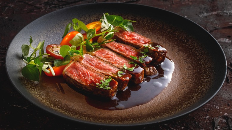 Like Japan, Australia has its own meat-grading system, ranging from MS0 to MS9+, and only four of these grades are given to beef that's officially recognized as Wagyu. The highest rating is typically reserved only for steaks that come from full-blooded cattle. Since the U.S. imports up to 90% of its Wagyu beef from Australia (via Straits Research), many restaurants serve it. In our ranking of popular steakhouse chain Wagyu beef steaks based on reviews, we determined that Urban Farmer in Denver and Steak 48 (which has several U.S. locations) serve Australian Wagyu beef. They placed fifth and third, respectively.