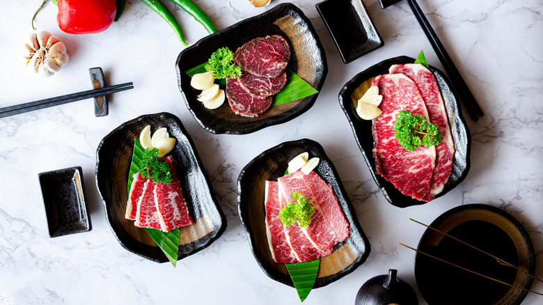 Just like American Wagyu beef is different from Japanese Wagyu, Australian Wagyu is different from its Japanese counterpart. Both of these beef types originate from Japanese cattle — "Wagyu" literally means "Japanese cow" — and are notorious for their extraordinary marbling, tenderness, and flavor. However, they also differ in each of these categories, as well as in the overall dining experience they provide. To understand these differences, we first have to learn more about Japanese Wagyu.