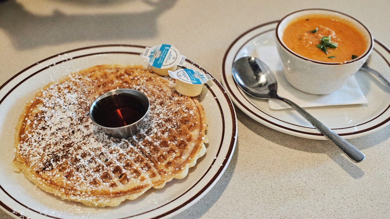 Waffle House is many things. It's a breakfast spot, a lunch joint, and a dinner restaurant. It's looked down on by some, revered by others, and a Southern restaurant that Anthony Bourdain loved. Many people turn to the restaurant for hangover cures or munchies solutions. That certainly makes sense, given the levels of salt and grease present at the 24/7 diner. Don't pigeonhole it, though — Waffle House has healthy items, if you look for them.