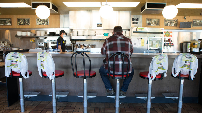 Booths should be saved for parties of two or more. If you're by yourself, cozy up to the counter. Maybe you'll make friends with some employees. Servers are usually happy to chat. Some have even called conversation priceless — although we recommend tipping in cash.