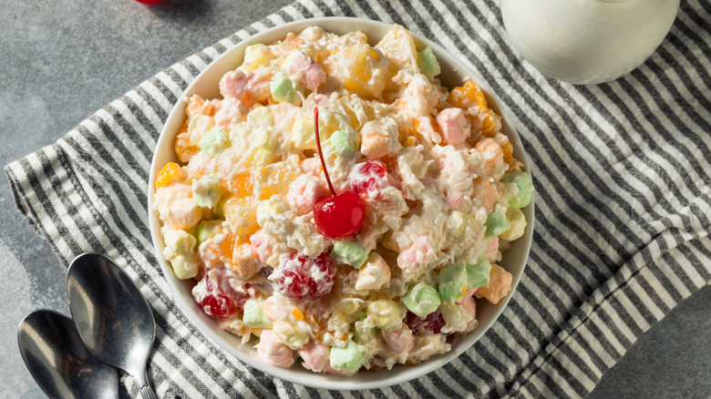While folks in the south still prepare ambrosia salad for annual holiday celebrations, this recipe has become something of a novelty item elsewhere in the United States, especially for picnics, where its main components may be somewhat risky in the heat of the summer sun. Lots of people can recall enjoying it at meals during their childhood, though, including one Reddit commenter who mentions, "This was 100% every time on the table at church potlucks."